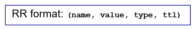 - DNS servers that implement the DNS distributed database store resource record(RR).