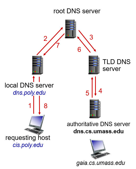 - The client then contacts one of these TLD servers, which returns the IP address of an authoritative server.