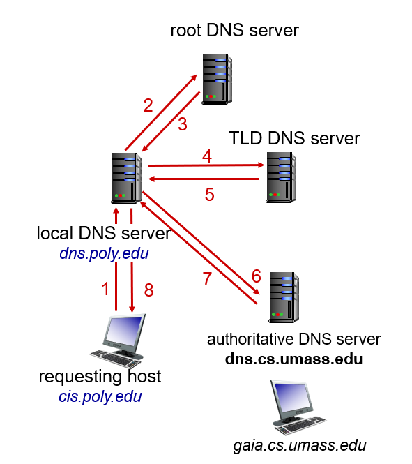 - Such ISP(residential, company, university) has a local DNS server, and when the host connects to an ISP, the ISP provides the host with the IP addresses of one or more of its local DNS servers.