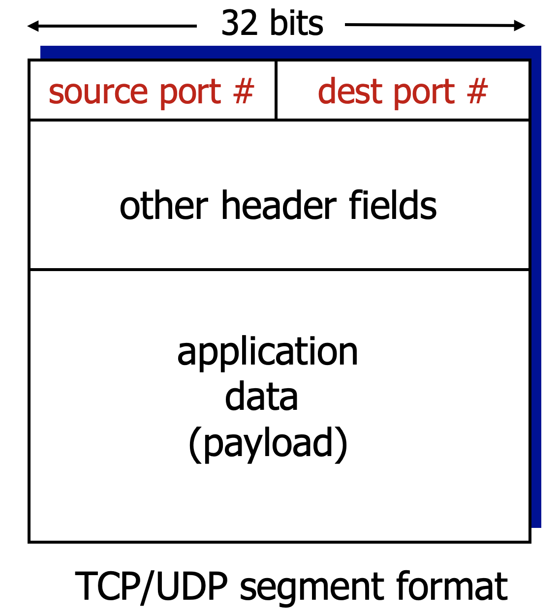 - Hosts use IP addresses and Port Numbers to direct segments to appropriate sockets.