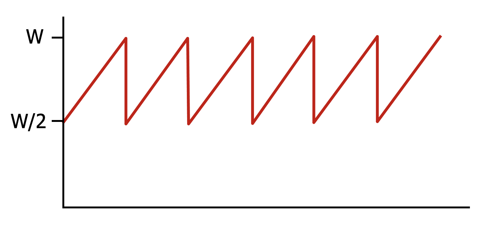 - The link simply cannot deliver packets to a receiver at a steady state that exceeds R/2.