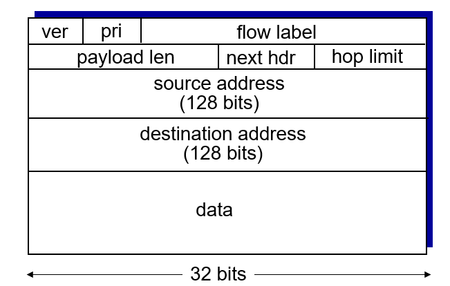 - In IPv6, the length of header is fixed to 40 byte, and no fragmentation is allowed.