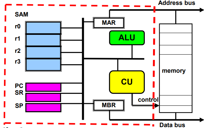 - Memory Buffer(data) Register(MBR) is also an interface for the external bus.