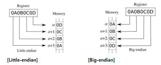 - For example when we store 1234H, the high-order byte is 12 and low-order byte is 34.