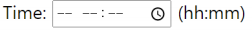 ex8) <input name="time" type="time" min="11:00" max="21:00" step="900" value="12:00 />